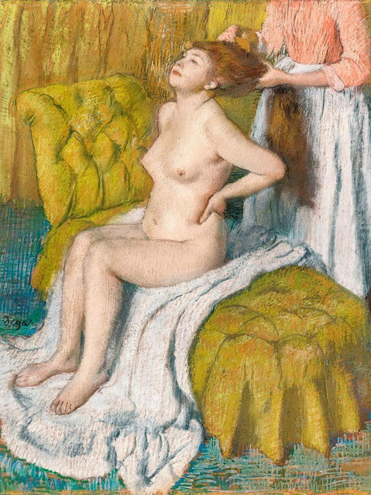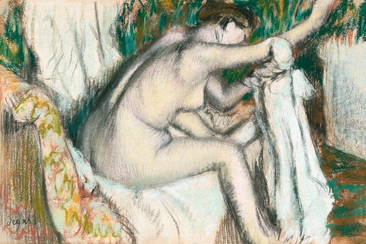 Woman Drying Her Arm White Modern Wood Framed Art Print with Double Matting by Degas, Edgar