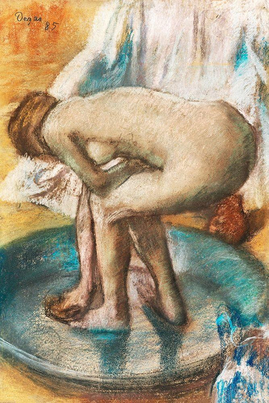 Bather Stepping into a Tub White Modern Wood Framed Art Print with Double Matting by Degas, Edgar
