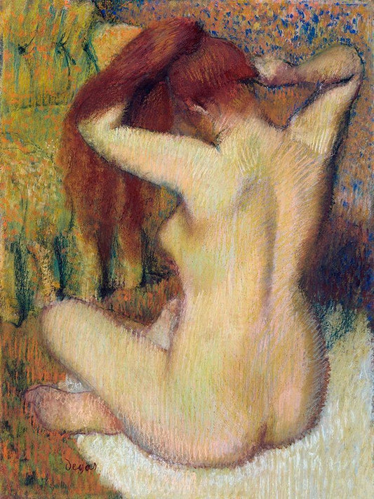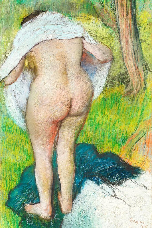 Nude lady. Bather Drying Herself White Modern Wood Framed Art Print with Double Matting by Degas, Edgar
