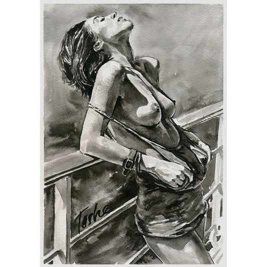Undressing Black Modern Wood Framed Art Print with Double Matting by Tashe