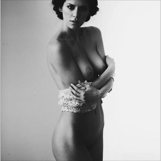Metallic Nude 3 Black Modern Wood Framed Art Print with Double Matting by JLP
