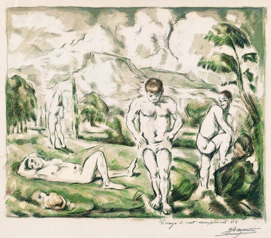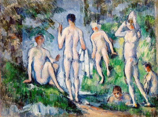The Bathers [Large version] White Modern Wood Framed Art Print with Double Matting by Cezanne, Paul