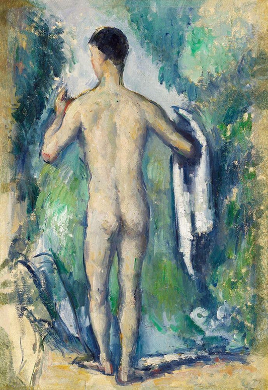 Standing Bather, Seen from the Back White Modern Wood Framed Art Print with Double Matting by Cezanne, Paul