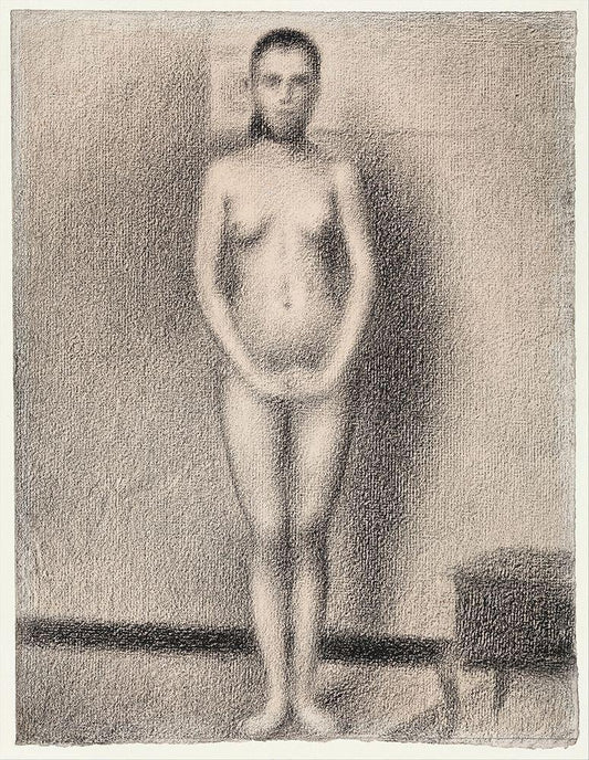 Study for Poseuses White Modern Wood Framed Art Print with Double Matting by Seurat, Georges