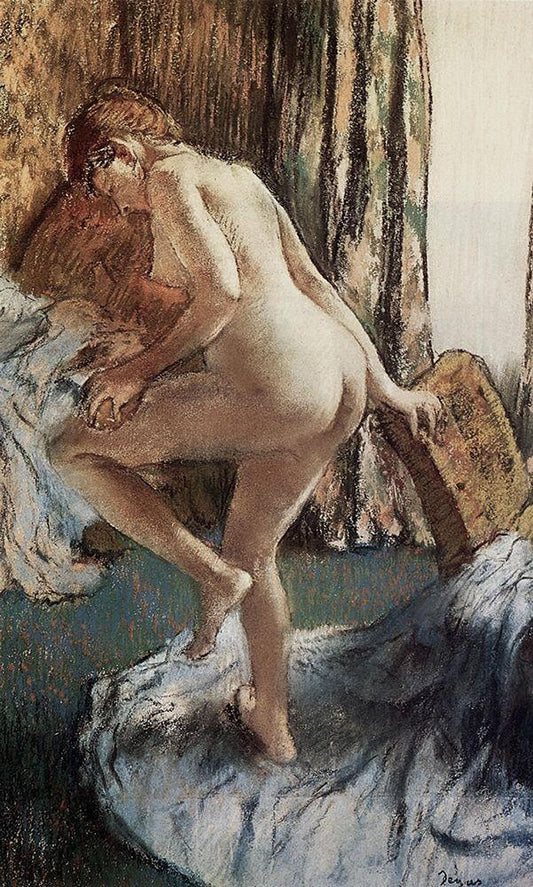After the Bath White Modern Wood Framed Art Print with Double Matting by Degas, Edgar