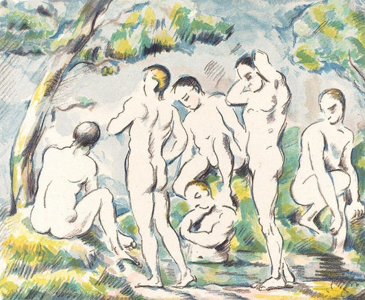 Group of Bathers White Modern Wood Framed Art Print with Double Matting by Cezanne, Paul