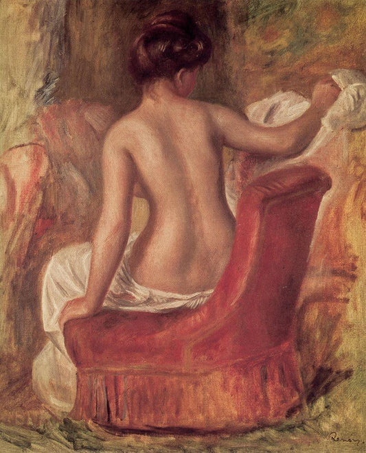 Nude in a Chair White Modern Wood Framed Art Print with Double Matting by Renoir, Pierre-Auguste