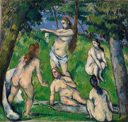 Five Bathers (Cinq baigneuses) (ca. 1877–1878) White Modern Wood Framed Art Print with Double Matting by Cezanne, Paul