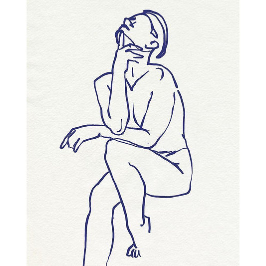 Figure In Blue II Black Modern Wood Framed Art Print with Double Matting by Warren, Annie
