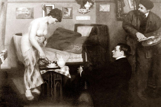 In the Painters Studio White Modern Wood Framed Art Print with Double Matting by Vintage Nudes