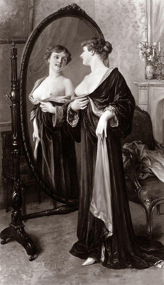 Le Miroir White Modern Wood Framed Art Print with Double Matting by Vintage Nudes