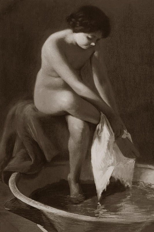 The Foot Washer White Modern Wood Framed Art Print with Double Matting by Vintage Nudes