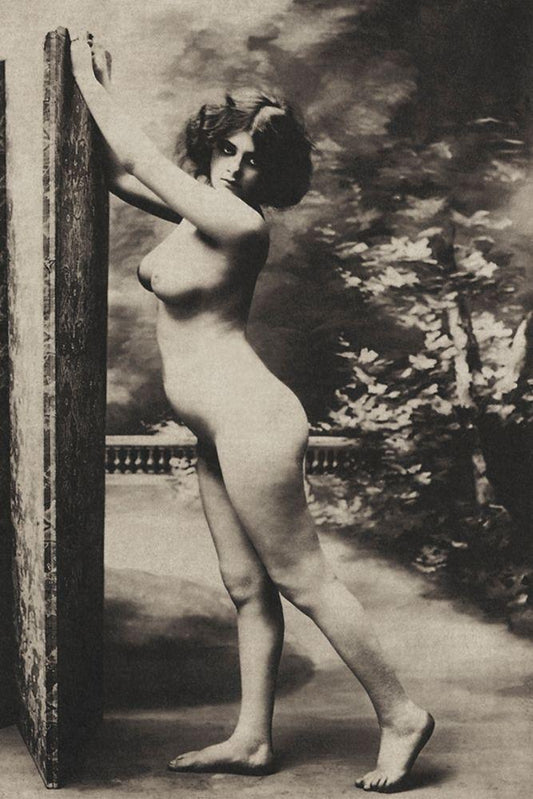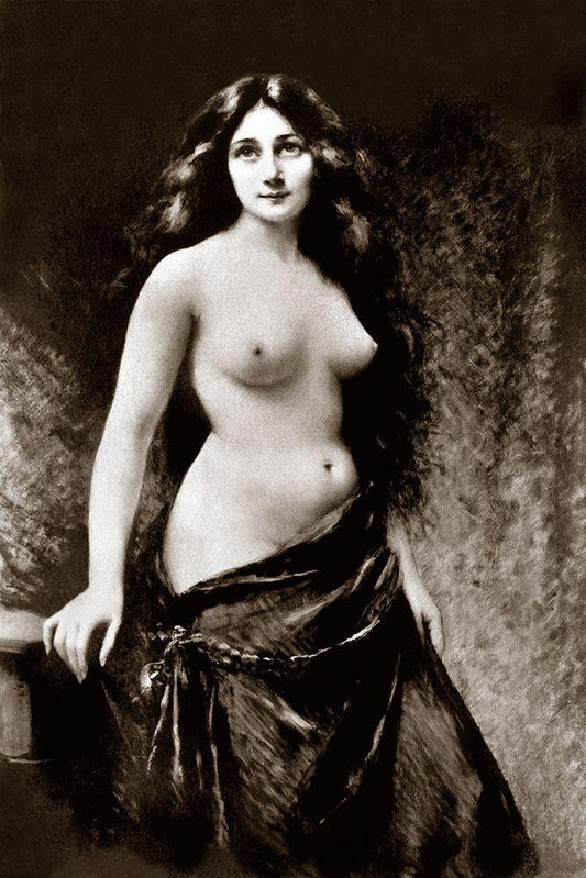 Nude in Drapery White Modern Wood Framed Art Print with Double Matting by Vintage Nudes