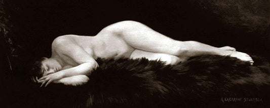 Asleep on a Fur Rug White Modern Wood Framed Art Print with Double Matting by Vintage Nudes