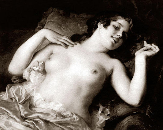 The Awakening White Modern Wood Framed Art Print with Double Matting by Vintage Nudes