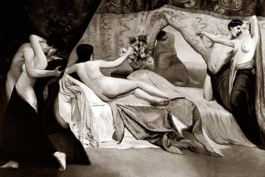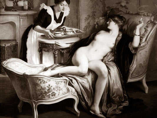 Loves Handmaiden White Modern Wood Framed Art Print with Double Matting by Vintage Nudes