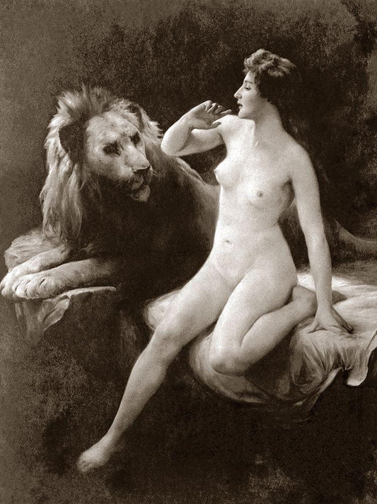 Nude with a Lion White Modern Wood Framed Art Print with Double Matting by Vintage Nudes