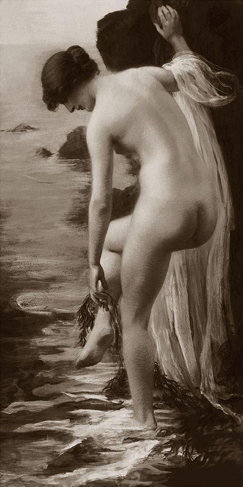 Salt Water Bath White Modern Wood Framed Art Print with Double Matting by Vintage Nudes