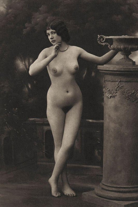 Le Magot White Modern Wood Framed Art Print with Double Matting by Vintage Nudes