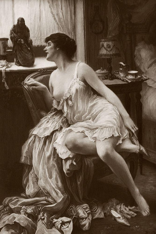 In Her Quarters White Modern Wood Framed Art Print with Double Matting by Vintage Nudes