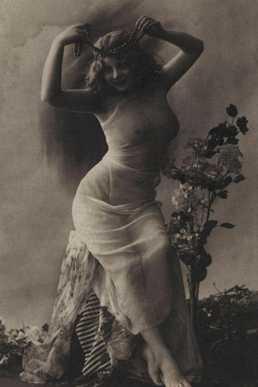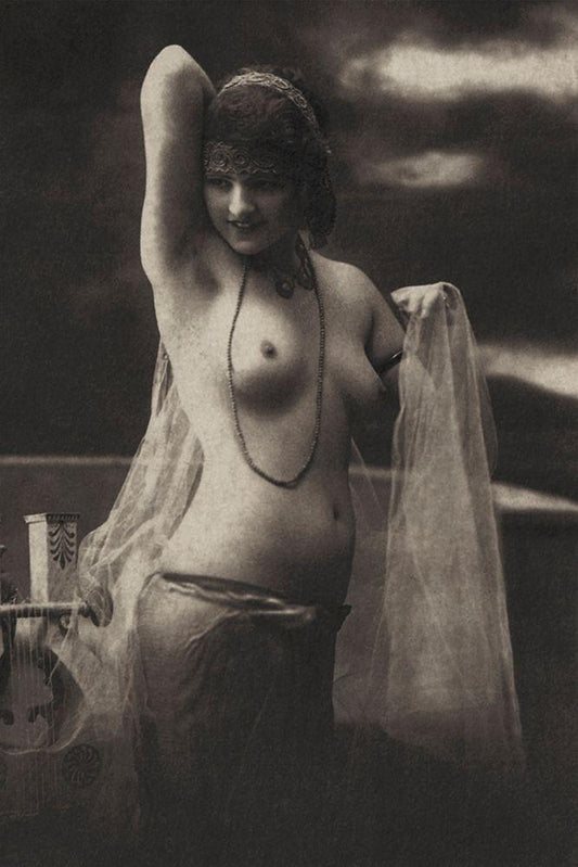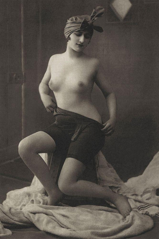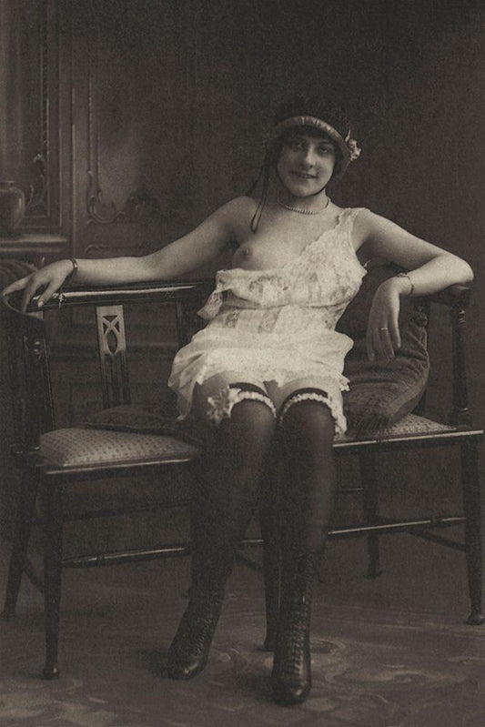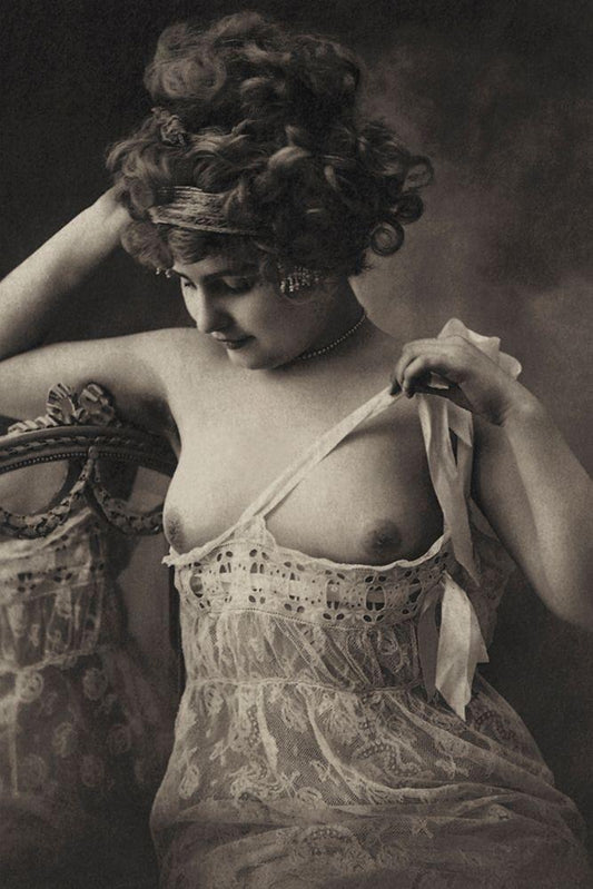 Without a Blouse White Modern Wood Framed Art Print with Double Matting by Vintage Nudes