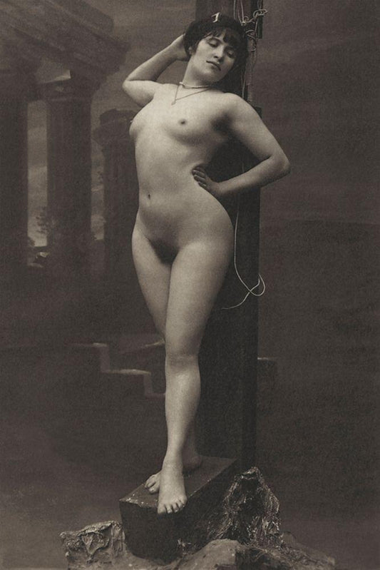 Sensuality White Modern Wood Framed Art Print with Double Matting by Vintage Nudes