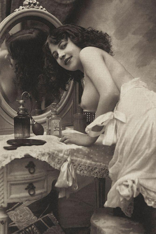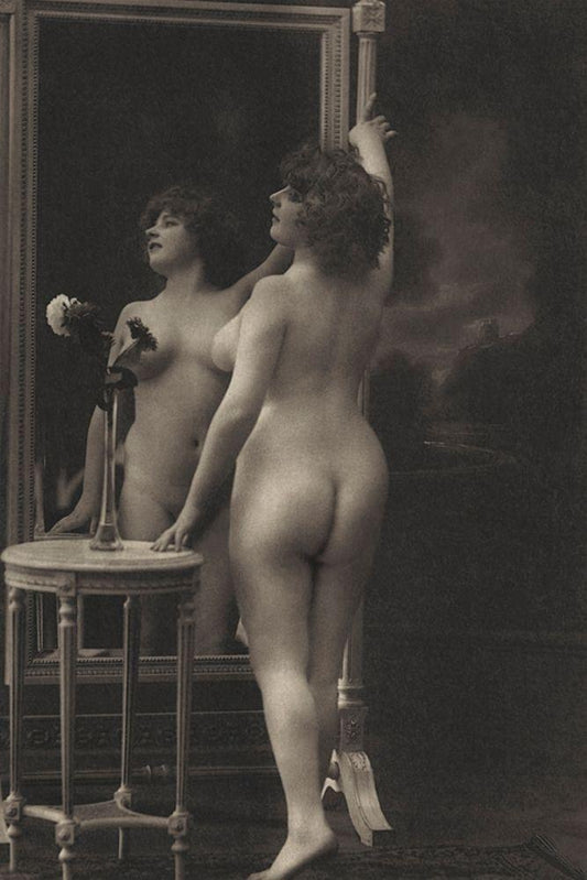 A Friendly Mirror White Modern Wood Framed Art Print with Double Matting by Vintage Nudes