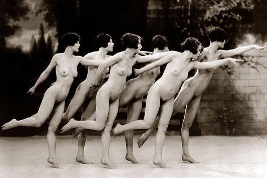 Six Nude Dancers White Modern Wood Framed Art Print with Double Matting by Vintage Nudes