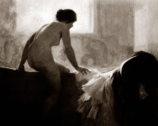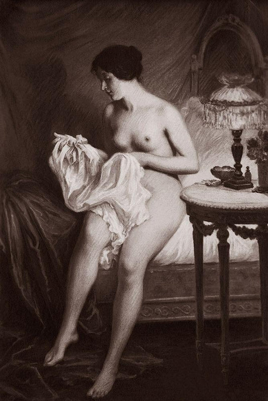 Au Coucher White Modern Wood Framed Art Print with Double Matting by Vintage Nudes