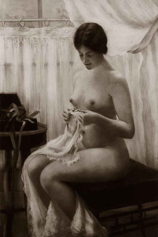 The Tranquility of the Drawing Room White Modern Wood Framed Art Print with Double Matting by Vintage Nudes