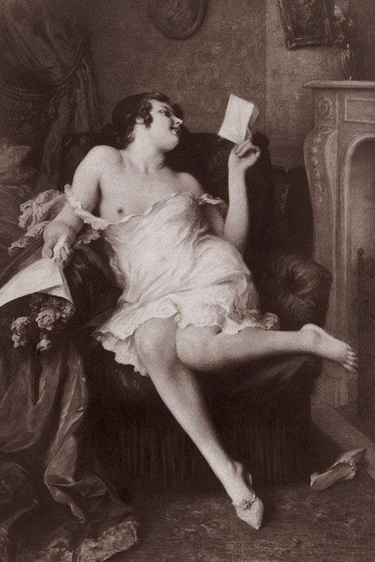 The Love Letter White Modern Wood Framed Art Print with Double Matting by Vintage Nudes