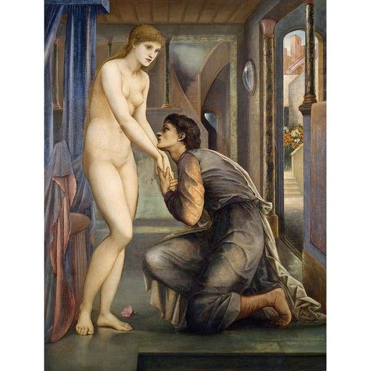 Pygmalion and the Image-The Godhead Fires White Modern Wood Framed Art Print by Burne–Jones, Edward