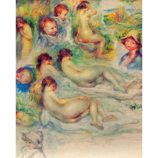 Studies of Pierre Renoir, His Mother, Aline Charigot, Nudes and Landscape White Modern Wood Framed Art Print by Renoir, Pierre-Auguste