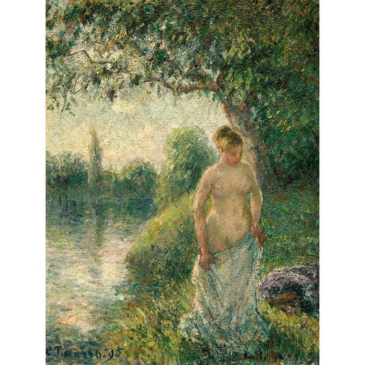 The Bather White Modern Wood Framed Art Print by Pissarro, Camille