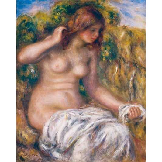 Seated Bather 1884 White Modern Wood Framed Art Print by Renoir, Pierre-Auguste