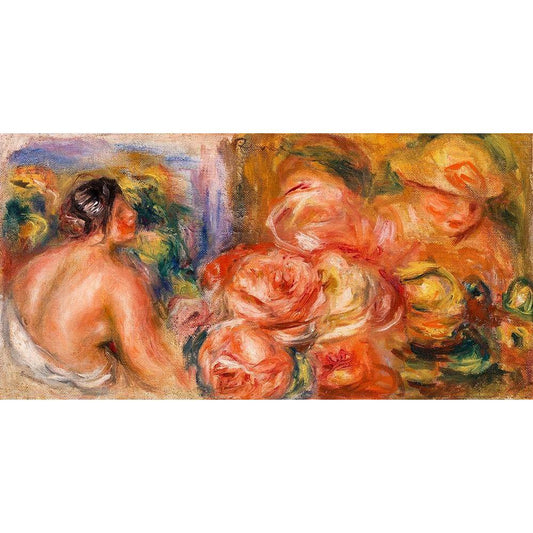 Roses and Small Nude 1916 White Modern Wood Framed Art Print by Renoir, Pierre-Auguste