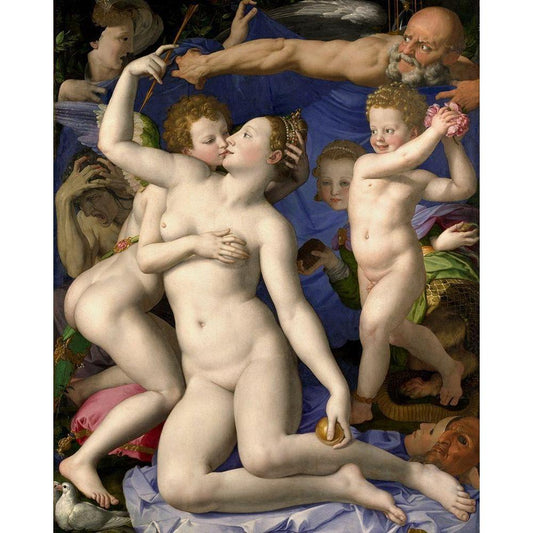 Venus, Cupid, Folly and Time White Modern Wood Framed Art Print by Bronzino