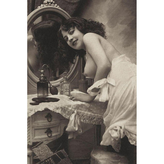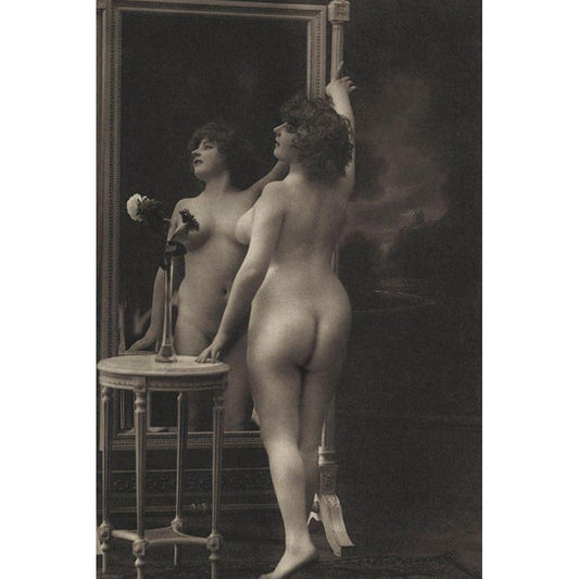 Mirror of Desire White Modern Wood Framed Art Print by Vintage Nudes