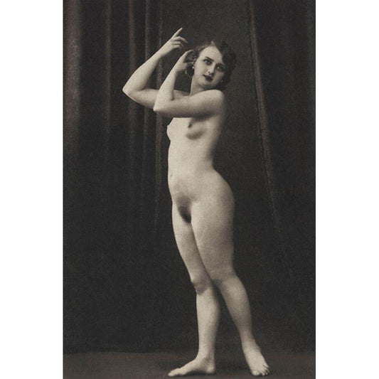 Nude in Drapery White Modern Wood Framed Art Print by Vintage Nudes