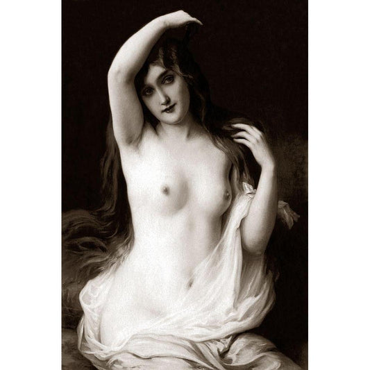 A Long-Haired Nude White Modern Wood Framed Art Print by Vintage Nudes