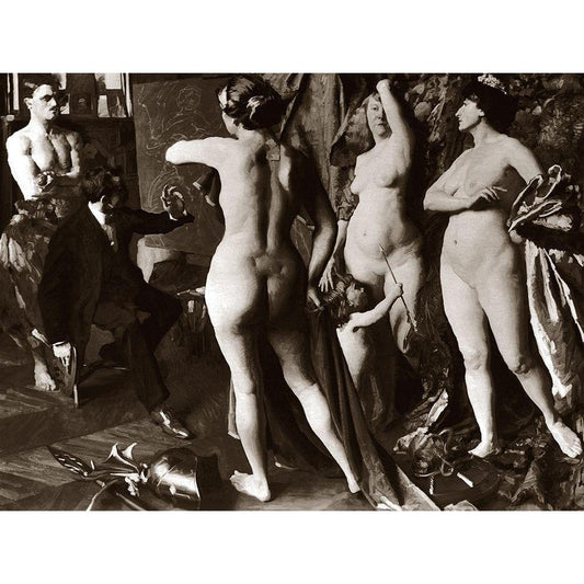 In the Painters Studio White Modern Wood Framed Art Print by Vintage Nudes