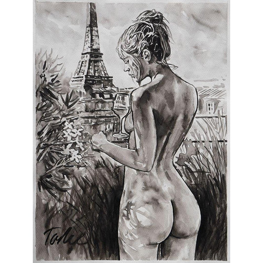 Spring in Paris White Modern Wood Framed Art Print by Tashe