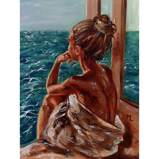 Braiding Hair White Modern Wood Framed Art Print by Zakrynycny, Viktor