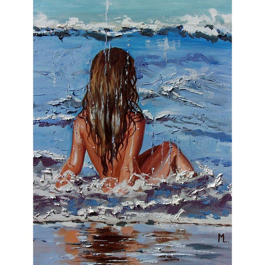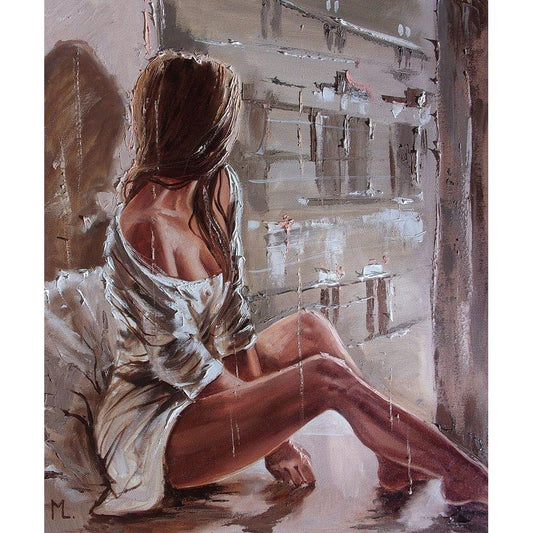 Sitting Beauty White Modern Wood Framed Art Print by Maindok, Paul