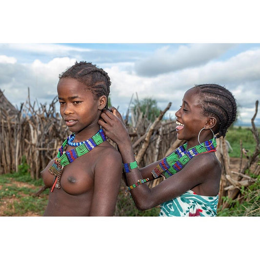 Daily Life In An Arbore Village White Modern Wood Framed Art Print by Wiener, Iris