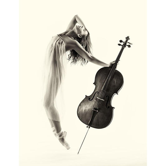 The Cello Dance White Modern Wood Framed Art Print by Yang, James