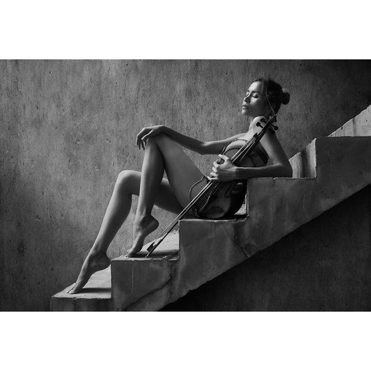 The Violist White Modern Wood Framed Art Print by Kisworo, Sebastian