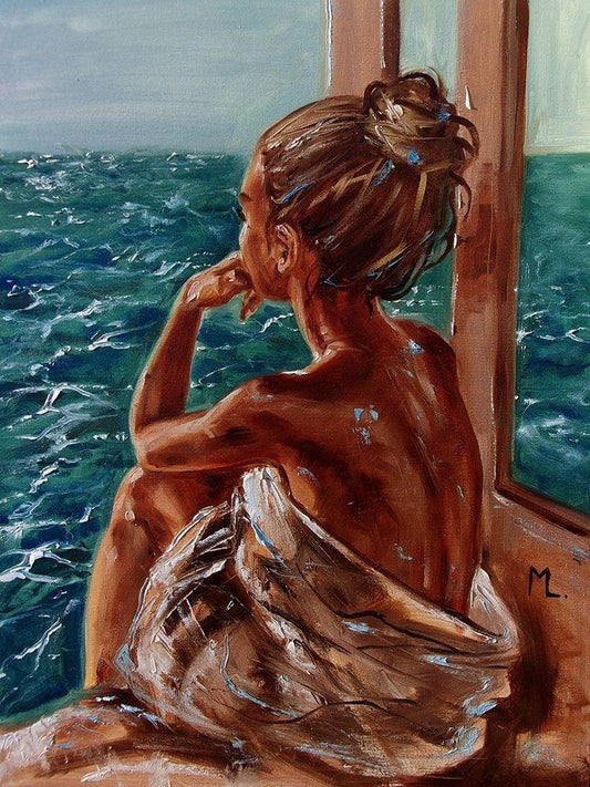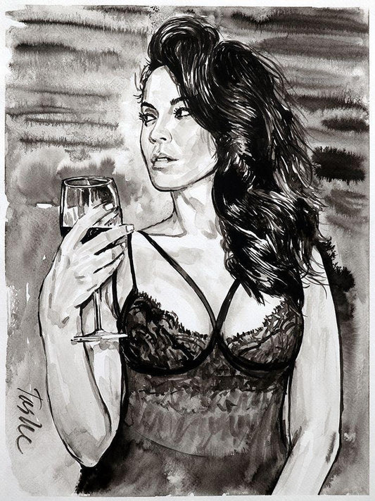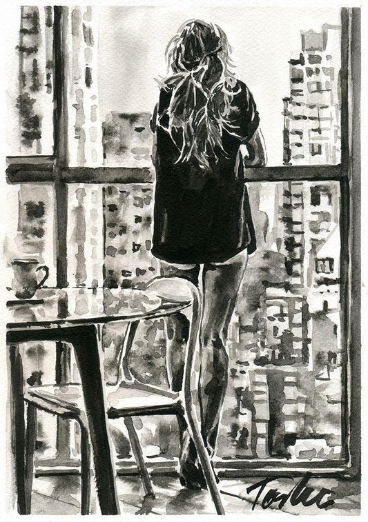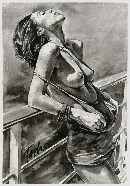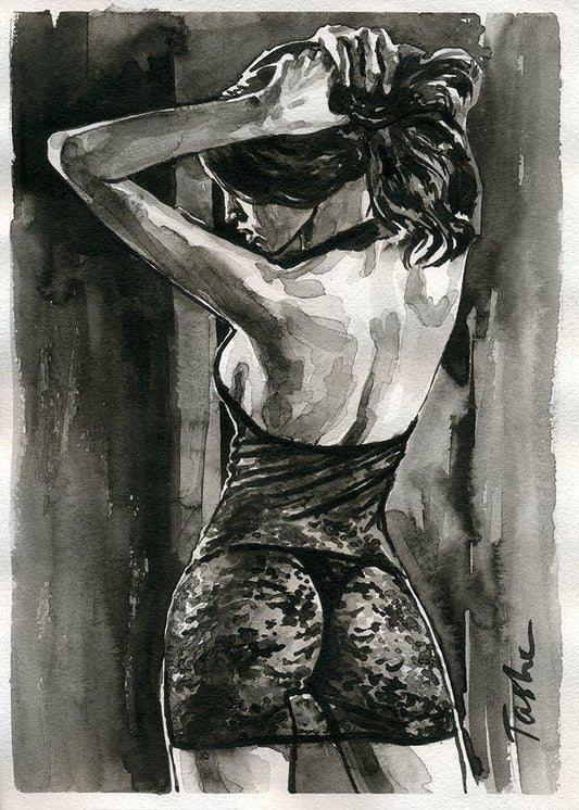 Undressing White Modern Wood Framed Art Print with Double Matting by Tashe
