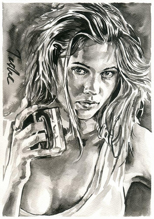 Red Hair Girl White Modern Wood Framed Art Print with Double Matting by Luniak, Monika