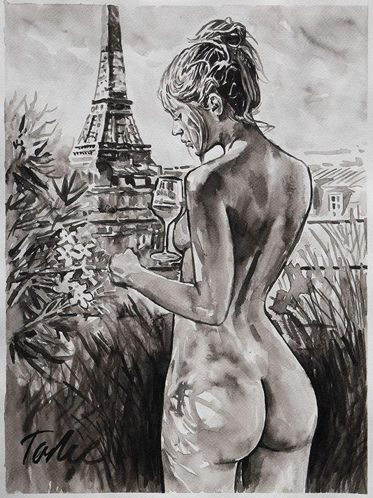 Spring in Paris White Modern Wood Framed Art Print with Double Matting by Tashe
